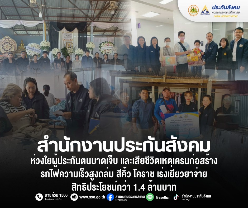 สำนักงานประกันสังคม ห่วงใยผู้ประกันตนบาดเจ็บ และเสียชีวิต...