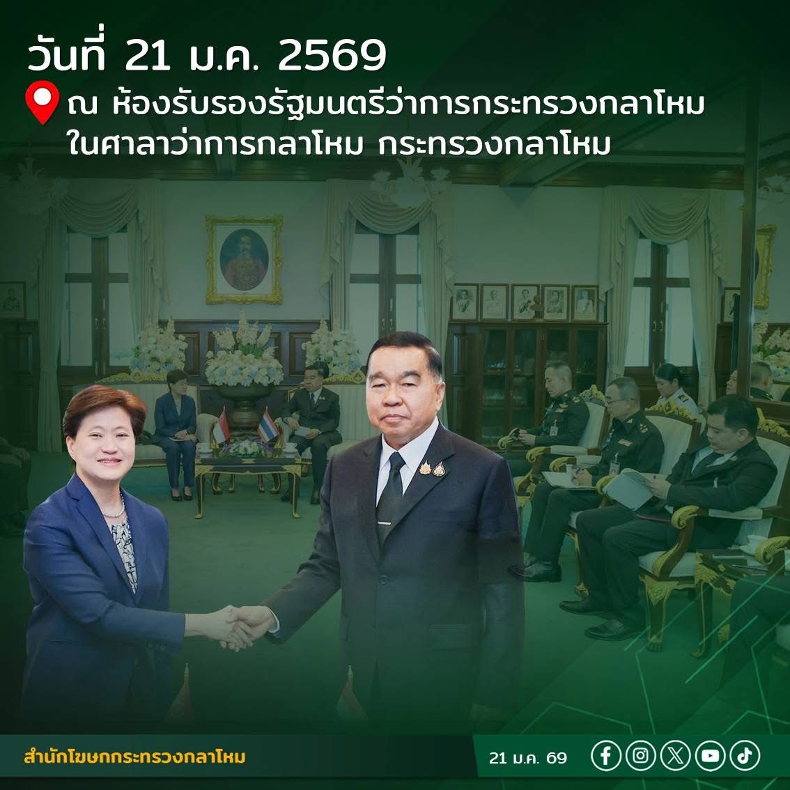 รัฐมนตรีว่าการกระทรวงกลาโหมให้การต้อนรับเอกอัครราชทูตสิงคโปร์...