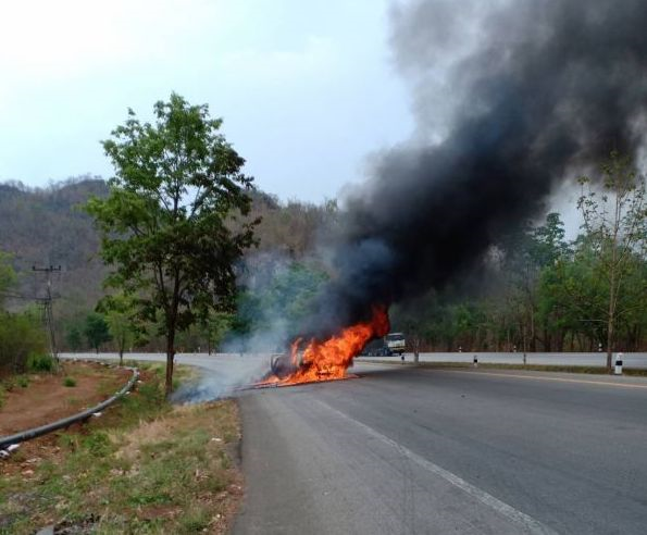 2ผัวเมียขนยาบ้ากว่าล้านเม็ด แหกด่านเผารถทิ้งกลางถนน