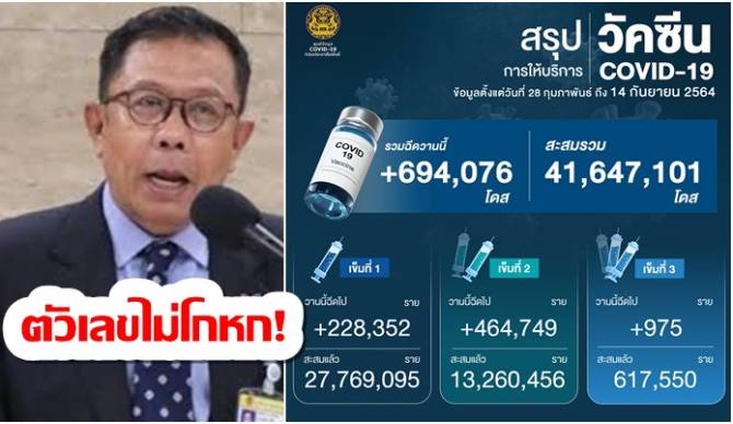 ตัวเลขไม่โกหก! "ศุภชัย"สวนนักวิจารณ์ โพสต์ไทยฉีดวัคซีนโควิดทะลุ 42 ล้านโดสแล้ว