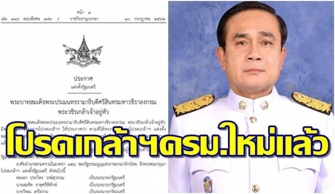 โปรดเกล้าฯครม.ใหม่แล้ว! 'ประยุทธ์'ควบกห. 'ประวิตร'รองนายกฯ 'ธรรมนัส'ช่วยเกษตรฯ
