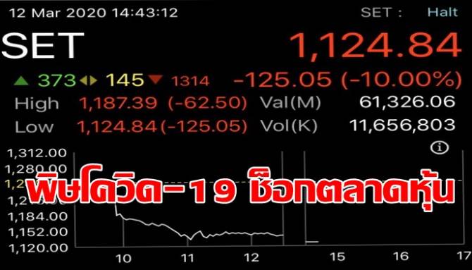 พิษโควิด-19 ช็อกตลาดหุ้น ! “เซอร์กิตเบรกเกอร์” รอบ 11 ปี