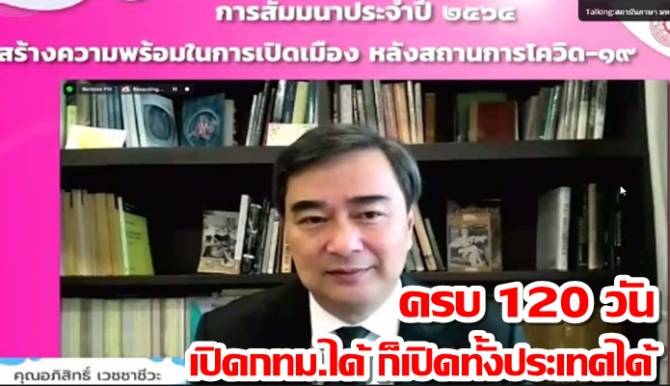 "อภิสิทธิ์" อภิปรายนอกสภาฯ! ยก 3 ตัวชี้วัดครบ 120 วัน เปิด กทม.ได้ก็เปิดทั้งประเทศได้
