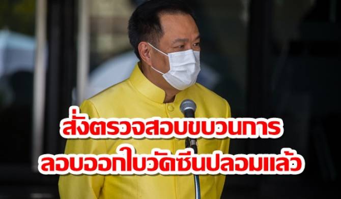 "อนุทิน"สั่งตรวจสอบขบวนการลอบออกใบวัคซีนปลอมแล้ว