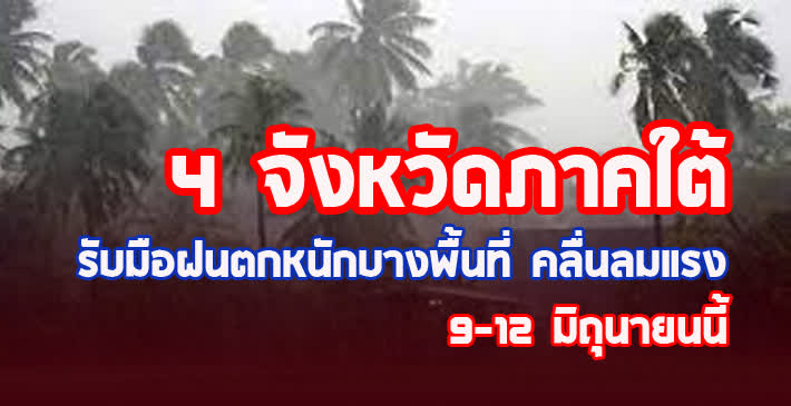 ปภ.ประสาน 4 จังหวัดภาคใต้ เตรียมรับมือฝนตกหนักบางพื้นที่และคลื่นลมแรง ช่วง 9 – 12...