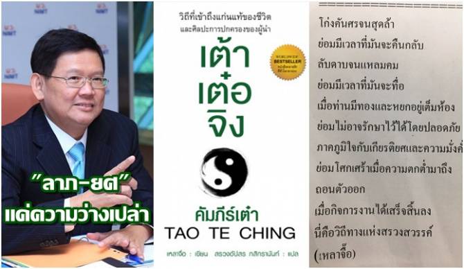 "สุวิทย์" ร้องหาปรัชญา "เต๋า" "ลาภ-ยศ"แค่ความว่างเปล่า