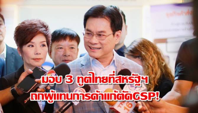 "จุรินทร์"มอบ 3 ทูตไทยที่สหรัฐฯ ถกผู้แทนการค้าแก้ตัดGSP!