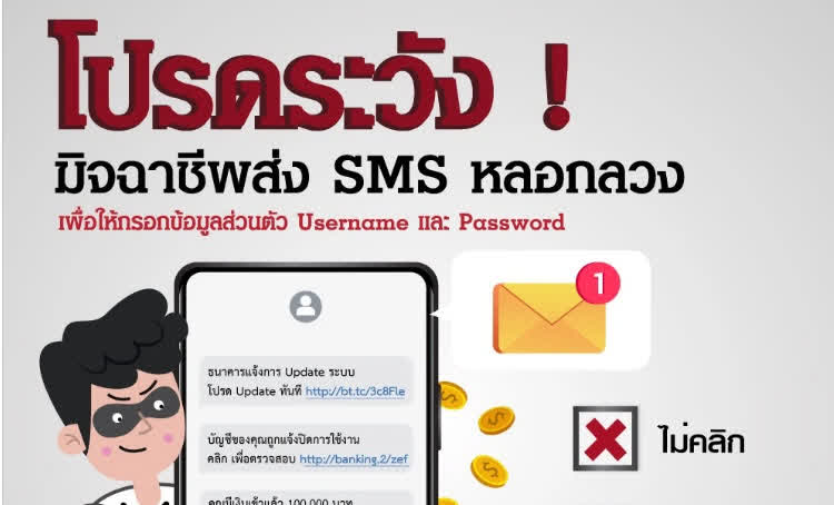 กสทช. เตือนประชาชนระวัง SMS หลอกลวง...