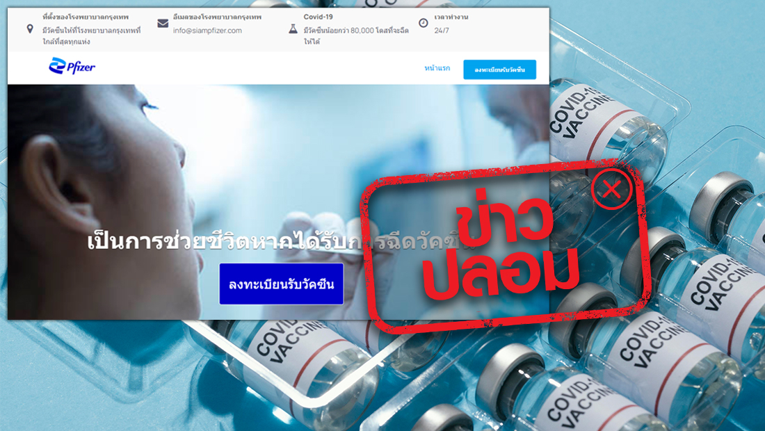 ข่าวปลอม อย่าแชร์! โรงพยาบาลกรุงเทพเปิดให้ลงทะเบียนจองวัคซีน Pfizer ผ่านเว็บ siampfizer