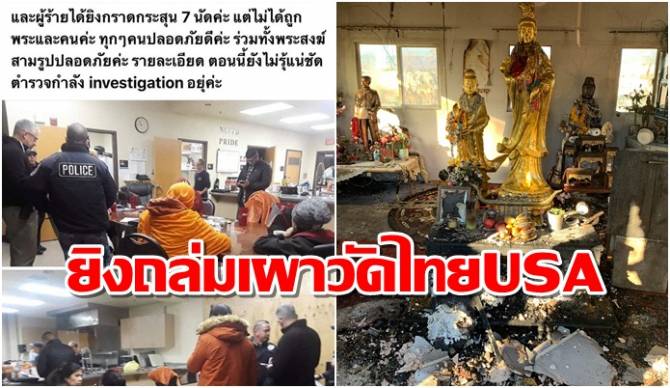 ชาวพุทธสุดเศร้า! คนร้ายยิงถล่มเผาวัดไทยในสหรัฐฯ