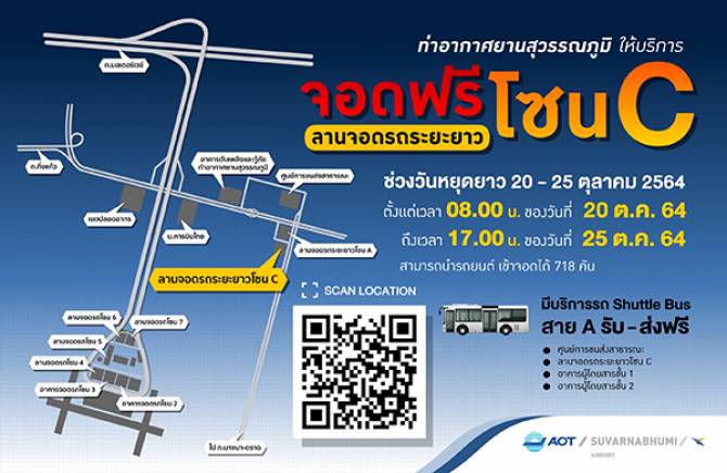 สนามบินสุวรรณภูมิ บริการที่จอดวันหยุดยาว 20 – 25 ต.ค.