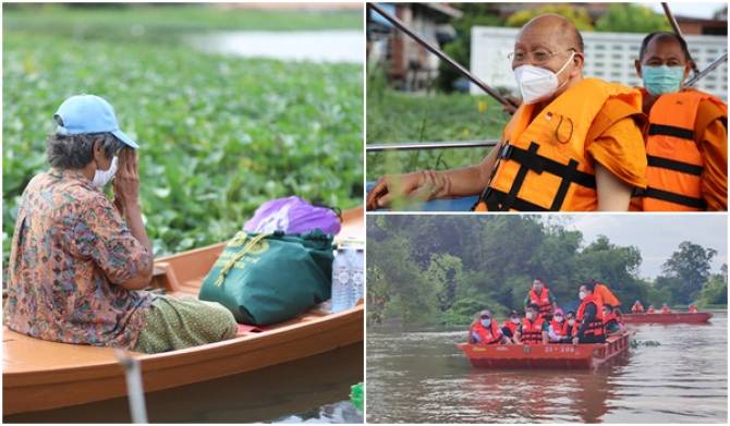 สมเด็จพระมหาธีราจารย์ นำคณะลงเรือช่วยน้ำท่วมพระนครศรีอยุธยา