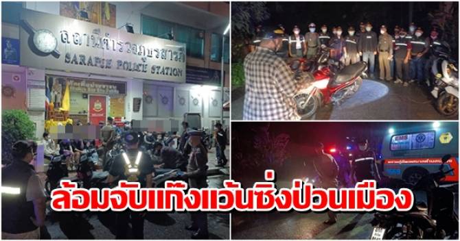 ตร.-ปกครองสารภี ล้อมจับแก๊งแว้นซิ่งป่วนเมือง 21 คน ยึดจยย. 13 คัน