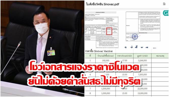 "อนุทิน" โชว์เอกสารแจงราคาซิโนแวค ยันไม่ด้อยค่าลั่นสธ.ไม่มีทุจริต