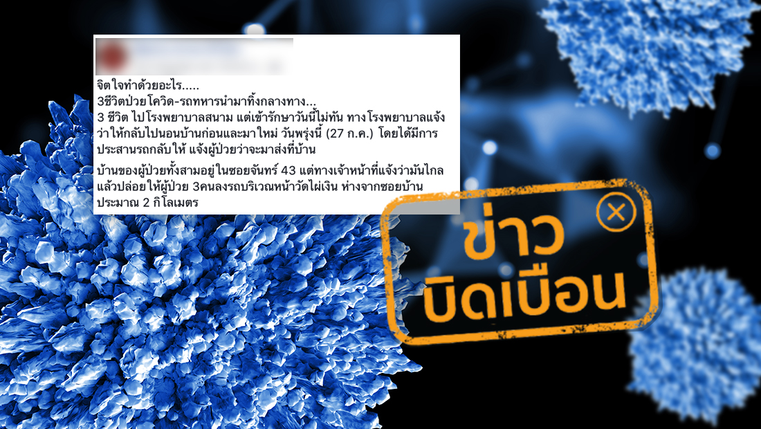 ข่าวบิดเบือน ผู้ป่วยโควิด-19 จำนวน 3 ราย ถูกทหารปล่อยทิ้งกลางทาง เนื่องจากปลายทางมีระยะไกล