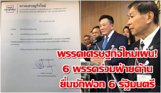 พรรคเศรษฐกิจใหม่เผ่น! 6 พรรคร่วมฝ่ายค้านยื่นซักฟอก 6 รมต.
