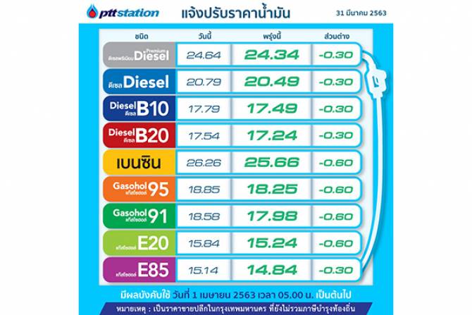 ข่าวดี! ราคาเบนซิน-แก๊สโซฮอล์ลดลง 60 สต.
