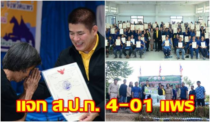 "ธรรมนัส"ลุยมอบใบอนุญาตทำกินที่ดินส.ป.ก. 4-01 แพร่​ ย้ำยึดคืนที่ดินแปลงใหญ่จากนายทุน