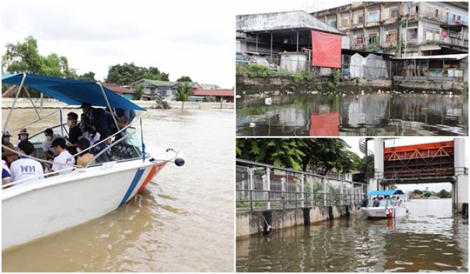 "วัน อยู่บำรุง"แทคทีมเพื่อไทยลงเรือดูระดับน้ำคลองย่อยเจ้าพระยา