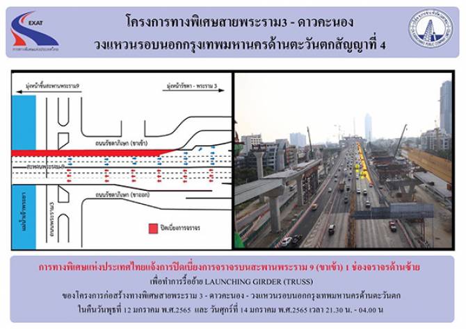 กทพ. แจ้งรื้อย้าย LAUNCHING GIRDER (TRUSS) ช่วงสะพานพระราม9