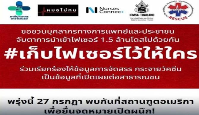 "บุคลากรการแพทย์" ออกแถลงการณ์ร่วม จี้ สธ.จัดสรร "ไฟเซอร์" โปร่งใส