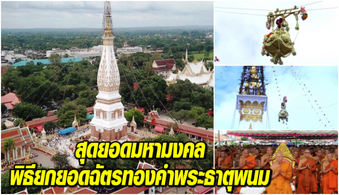 สุดยอดมหามงคล พิธียกยอดฉัตรทองคำพระธาตุพนม เสียงพุทธศาสนิกชน สาธุๆๆ กึกก้องลั่นลานธรรม