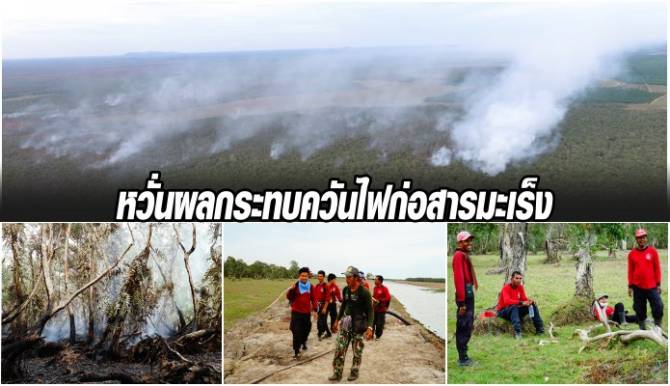 จนท.คุมไฟไหม้ป่าพรุให้อยู่ในวงจำกัด หวั่นผลกระทบจากควันไฟก่อสารมะเร็ง