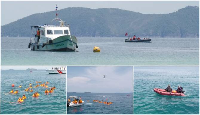 ตราด ฝึกร่วมการป้องกันและบรรเทาสาธารณภัย จำลองสถานการณ์เรือนักท่องเที่ยวล่มในทะเล