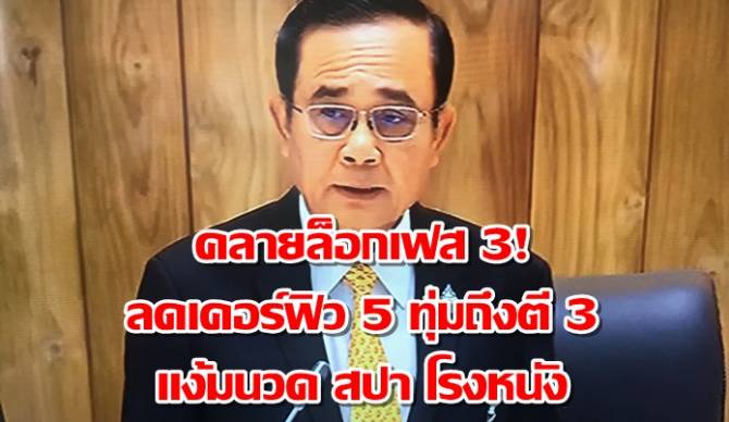 คลายล็อกเฟส 3! ลดเคอร์ฟิว 5 ทุ่มถึงตี 3 แง้มนวด สปา โรงหนัง