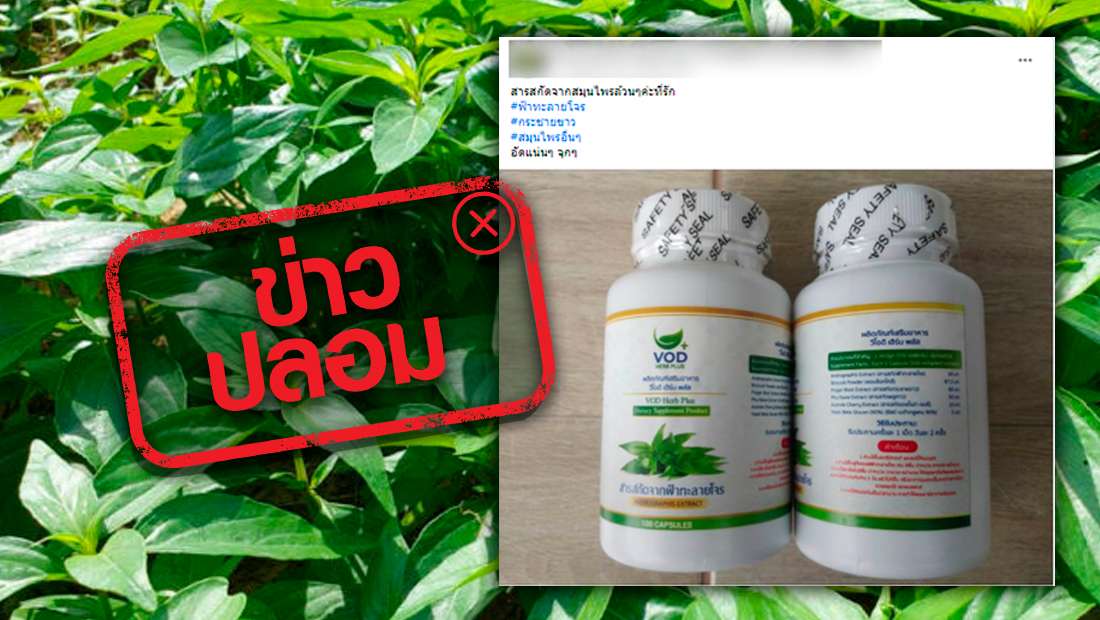 ข่าวปลอม อย่าแชร์! ผลิตภัณฑ์เสริมอาหาร วีโอดี เฮิร์บ พลัส มีฟ้าทะลายโจรเป็นส่วนประกอบ