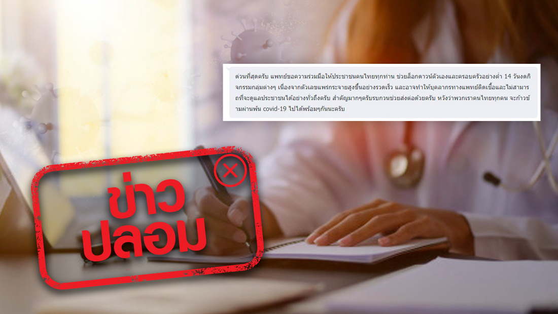 ข่าวปลอม อย่าแชร์! แพทย์ให้คนไทย ช่วยล็อกดาวน์ตัวเองและครอบครัว 14 วัน