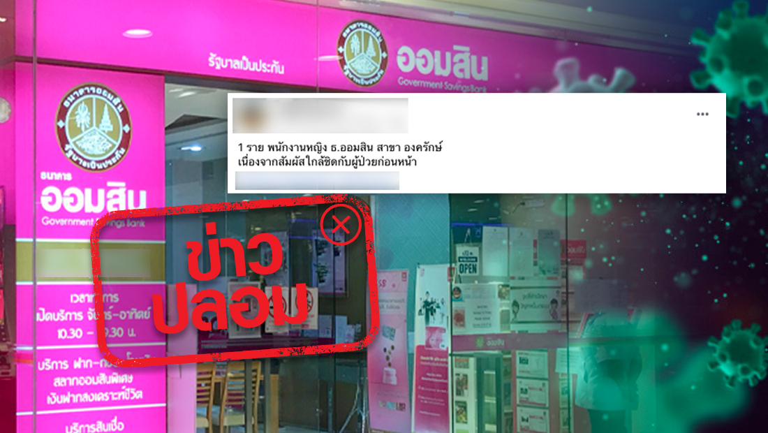 ข่าวปลอม อย่าแชร์! พนักงานธนาคารออมสิน สาขาองครักษ์ ติดเชื้อโควิด-19