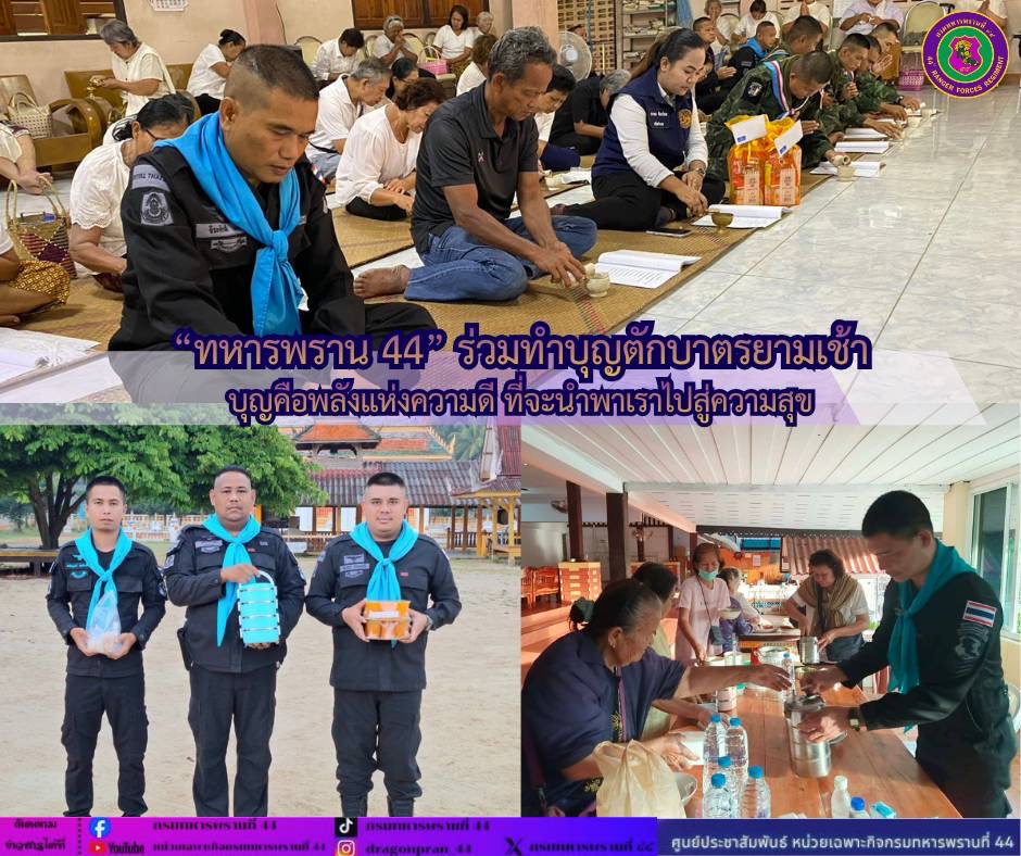 ทหารพรานที่ 44 ร่วมทำบุญตักบาตรยามเช้า บุญคือพลังแห่งความดี ที่จะนำพาเราไปสู่ความสุข