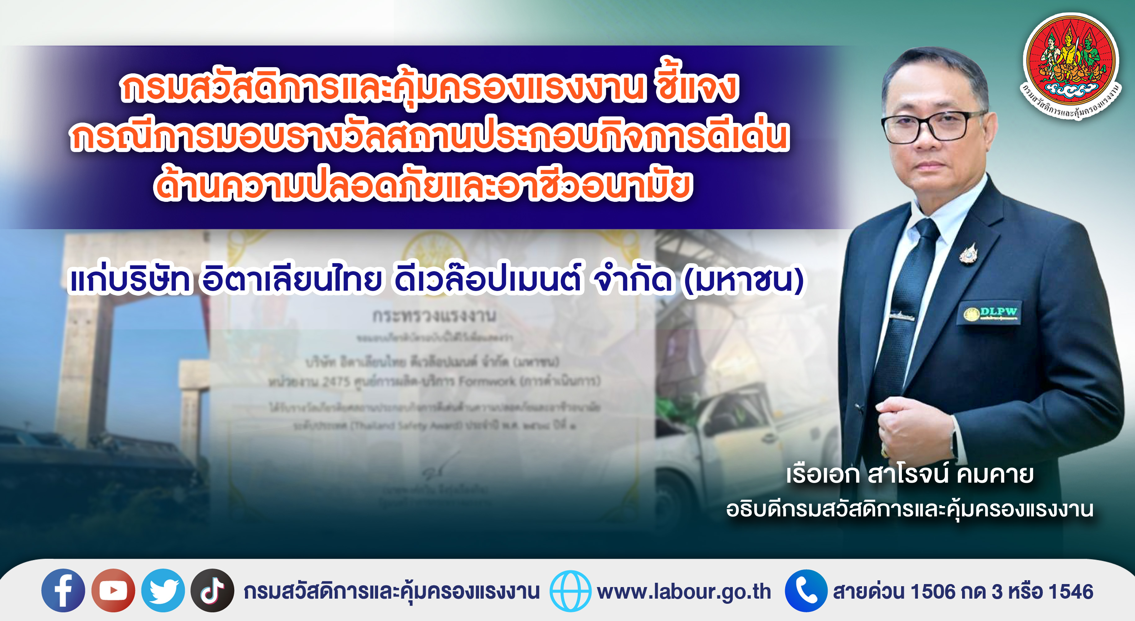กรมสวัสดิการและคุ้มครองแรงงาน ชี้แจงกรณีการมอบรางวัล...