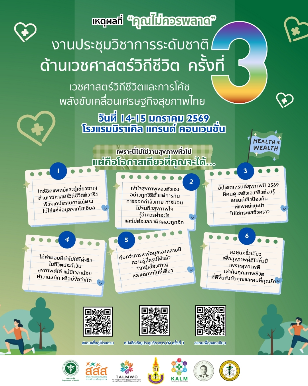 กรมอนามัย ร่วมกับโครงการ KALM และสมาคมเวชศาสตร์วิถีชีวิตและเวลเนสไทย...