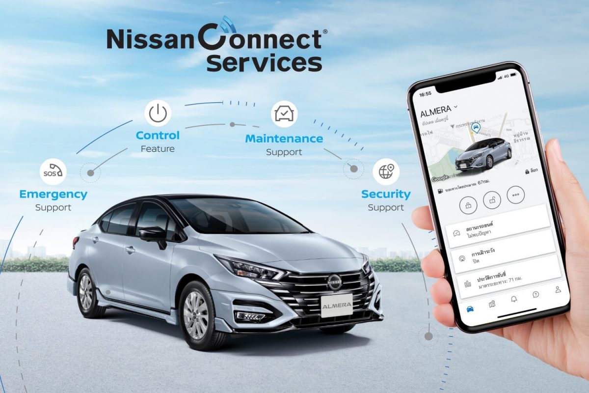 ระบบ NissanConnect Services สำหรับควบคุมรถผ่านสมาร์ทโฟน เช่น สตาร์ทเครื่องยนต์ ล็อก/ปลดล็อกรถ และค้นหาตำแหน่งรถ