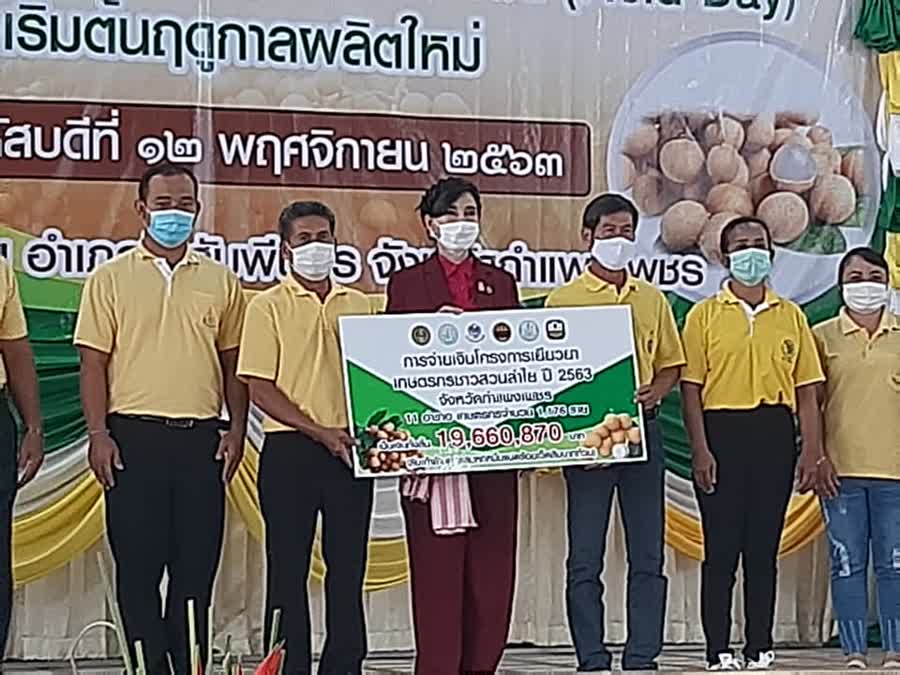 รัฐมนตรีช่วยว่าการกระทรวงเกษตรและสหกรณ์ ลงพื้นที่จังหวัดกำแพงเพชร เปิดงานวันถ่ายทอดเทคโนโลยี (Field Day) เพื่อเริ่มต้นฤดูกาลผลิตใหม่ พร้อมมอบเงินเยียวยาให้แก่เกษตรกรสวนลำไยที่ได้รับผลกระทบจากการแพร่ระบาดของโควิด-19