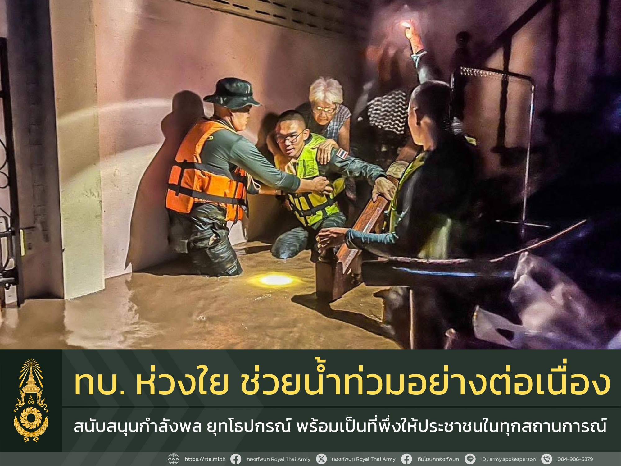 ทบ. ระดมกำลังพลและยุทโธปกรณ์ ช่วยประชาชนประสบอุทกภัยพายุบัวลอย