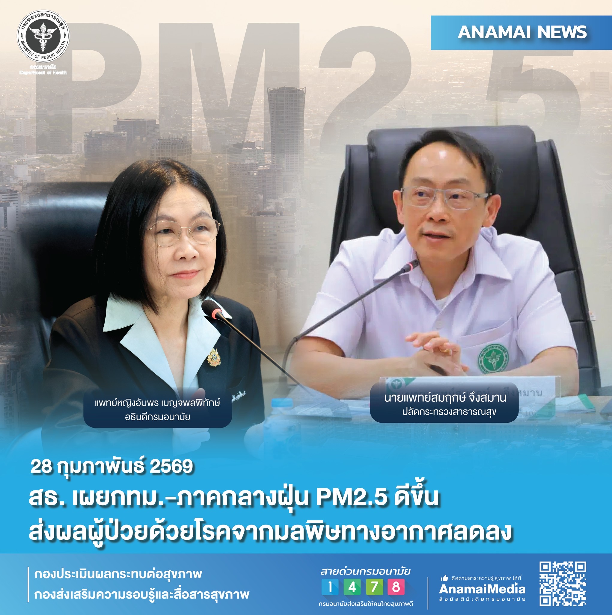 สธ. เผยกทม.-ภาคกลางฝุ่น PM2.5 ดีขึ้น...