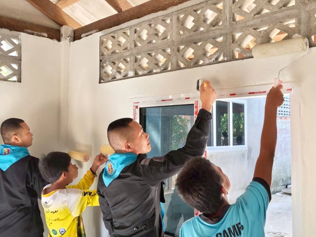 ฉก.ทพ.44 ร่วมทาสีปอเนาะ ขับเคลื่อน “ต้นแบบปอเนาะสีขาว” ในพื้นที่...