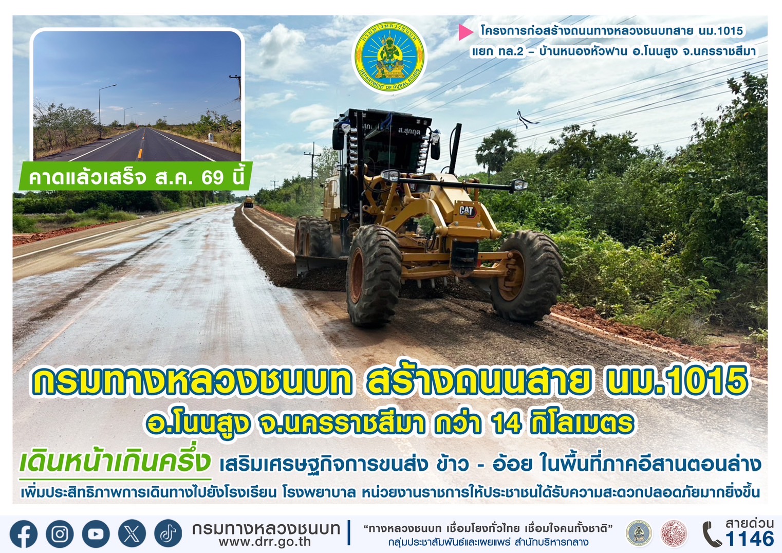 กรมทางหลวงชนบท สร้างถนนสาย นม.1015 อ.โนนสูง จ.นครราชสีมา กว่า 14 กิโลเมตร...