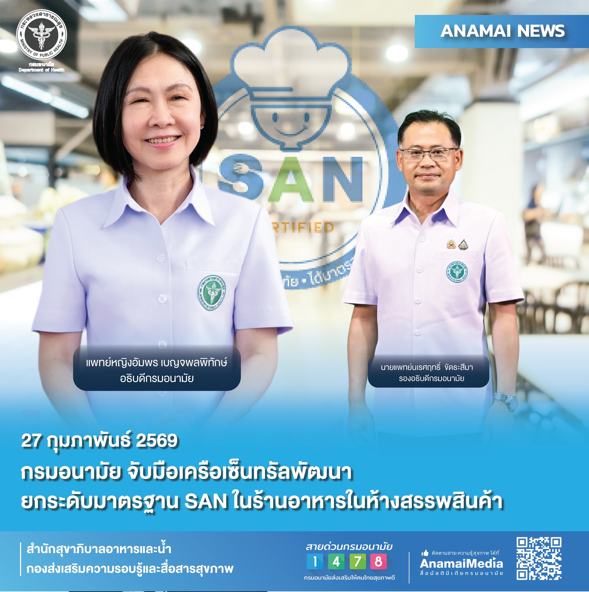 กรมอนามัย จับมือเครือเซ็นทรัลพัฒนา ยกระดับมาตรฐาน SAN...