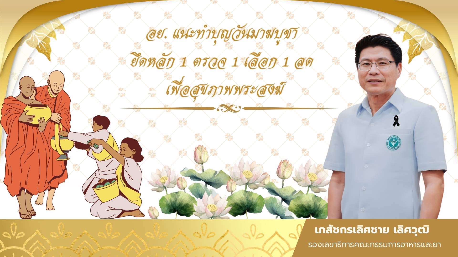 อย. แนะทำบุญวันมาฆบูชา ยึดหลัก 1 ตรวจ 1 เลือก 1 ลด เพื่อสุขภาพพระสงฆ์