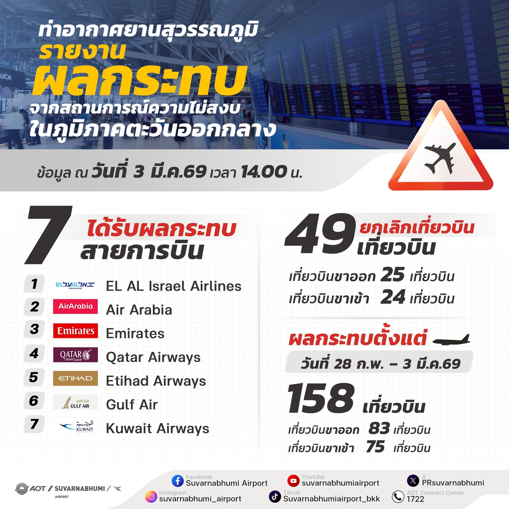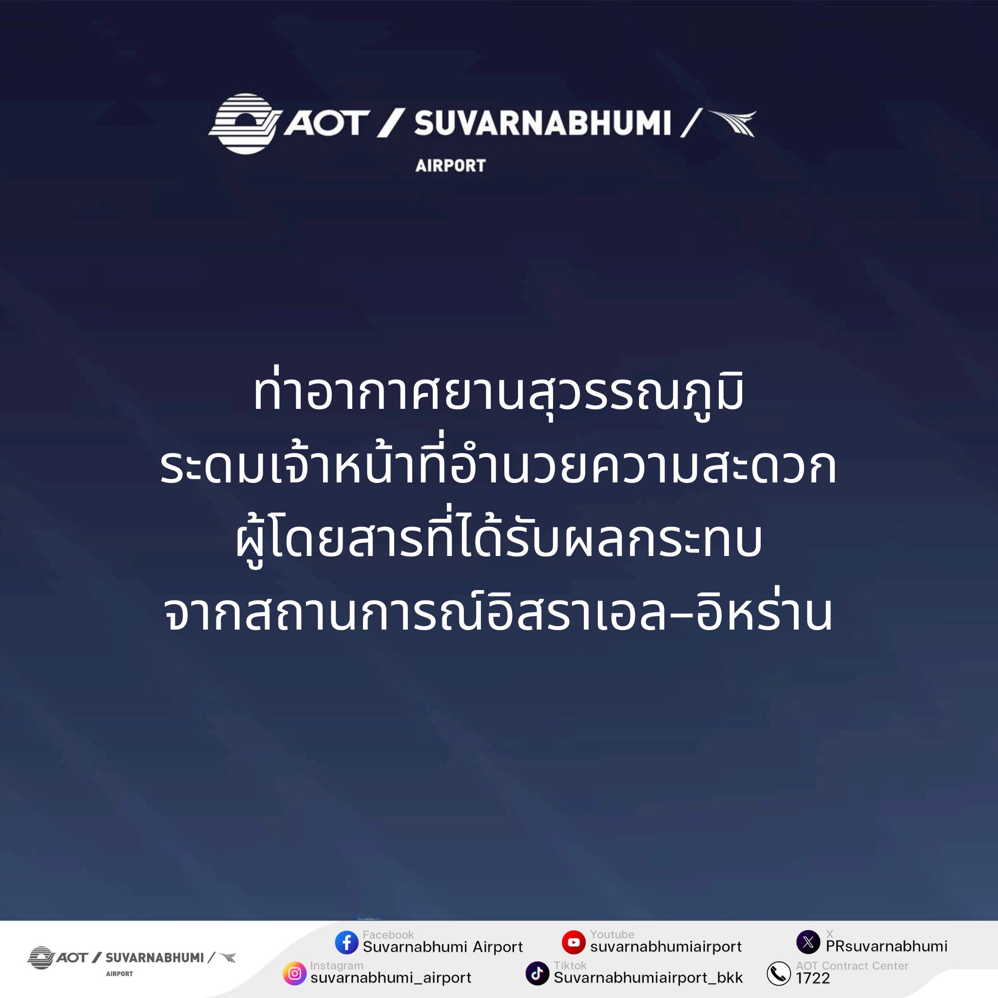AOT สรุปภาพรวมเที่ยวบินที่ได้รับผลกระทบจากสถานการณ์ตะวันออกกลาง...