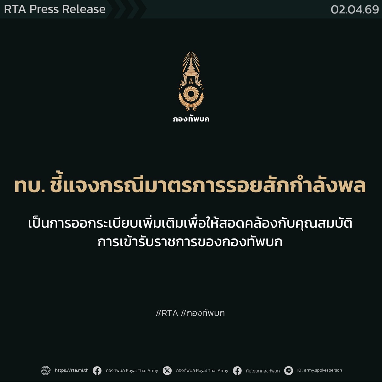 กองทัพบกชี้แจงกรณีมาตรการเกี่ยวกับรอยสักของกำลังพล...