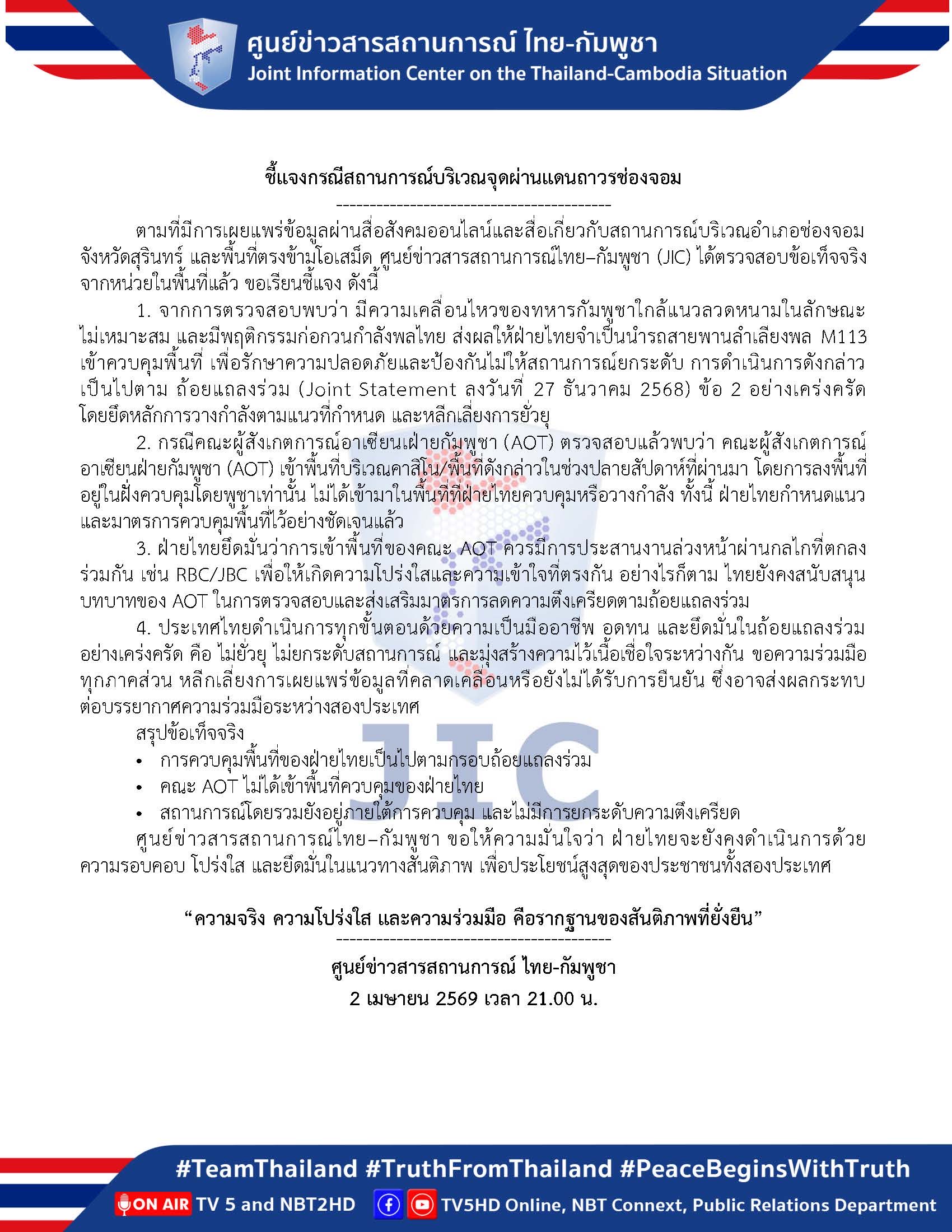 ศูนย์ข่าวสารสถานการณ์ไทย–กัมพูชา (Joint Information Center on the Thailand–Cambodia Situation)...